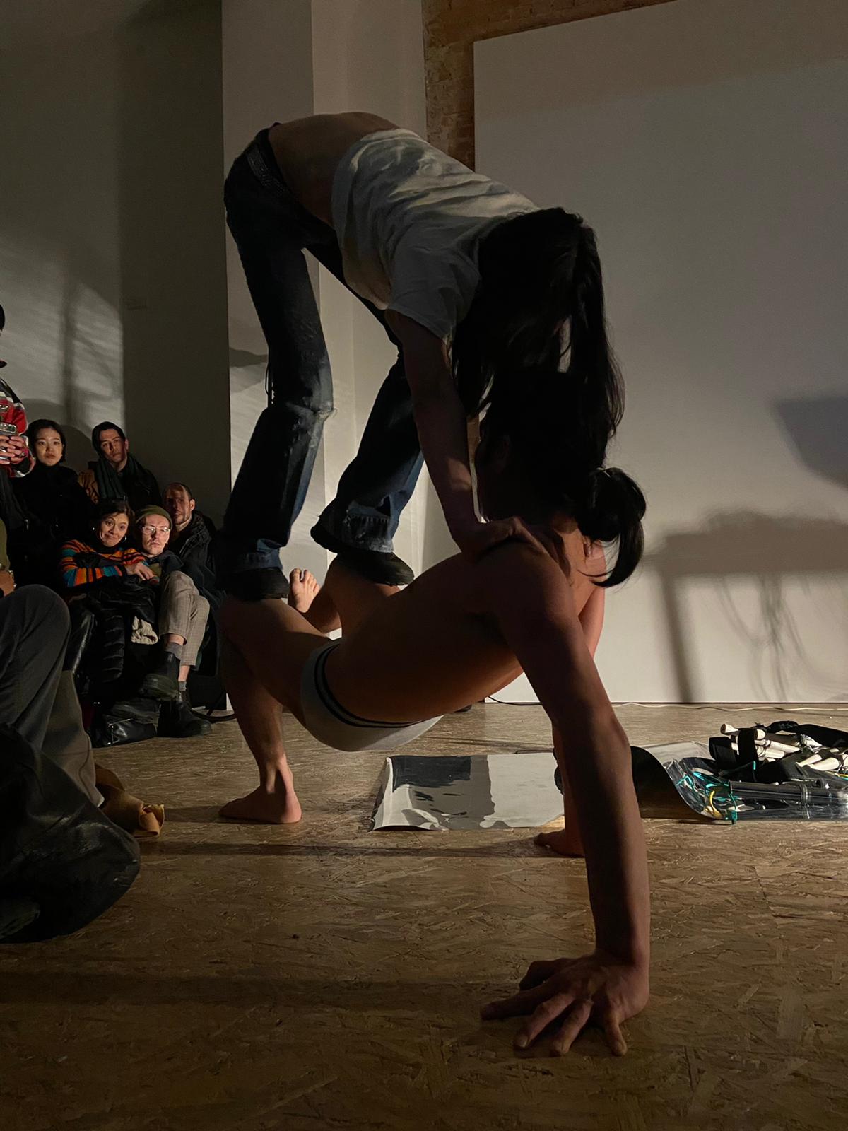 A ritual of transformation, collision and convergence between bodies, sound and audience.